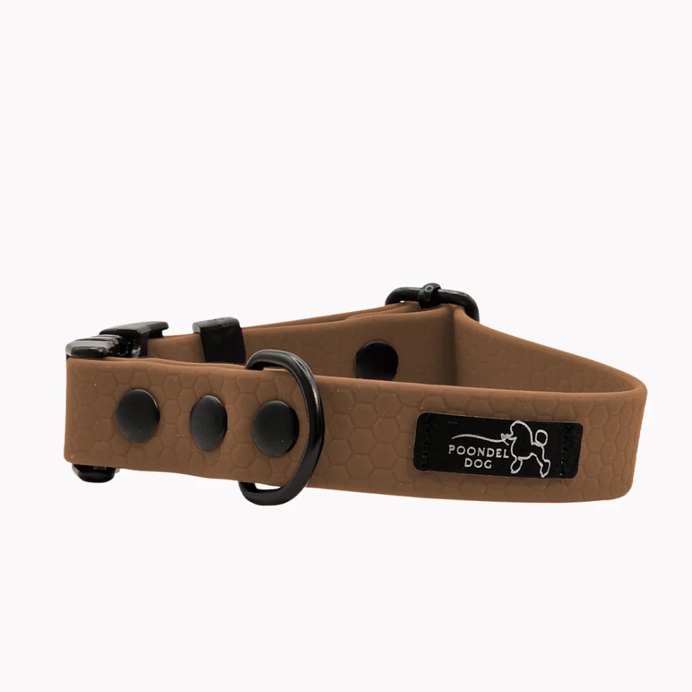 Obroża wodoodporna Hexa Brązowa marki Poondel Dog z klamrą metalową