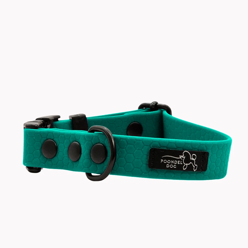 Obroża wodoodporna Hexa Morska zieleń marki Poondel Dog z klamrą metalową