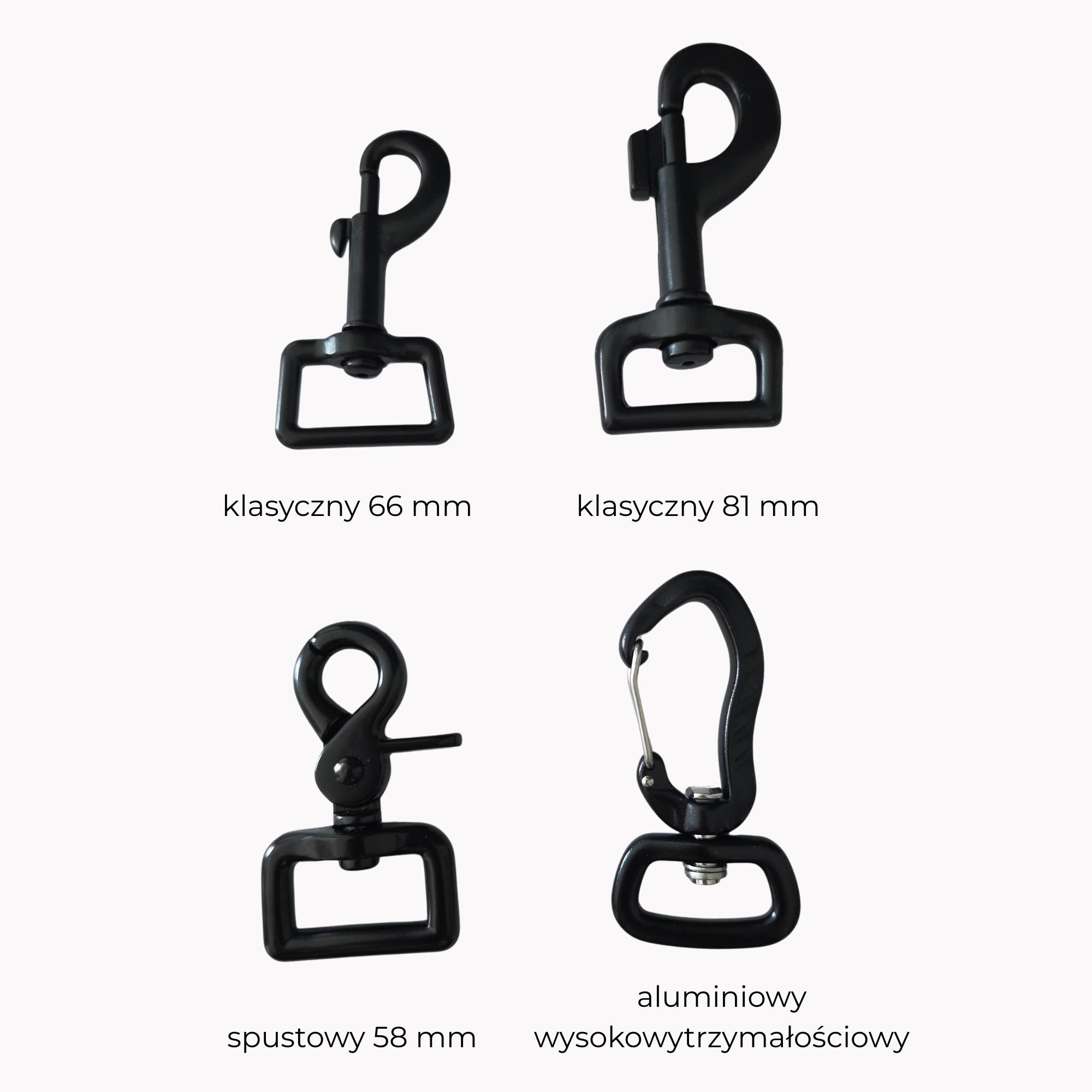 - Karabińczyk rozmiar Klasyczny 66 mm,Spustowy czarny 58 mm